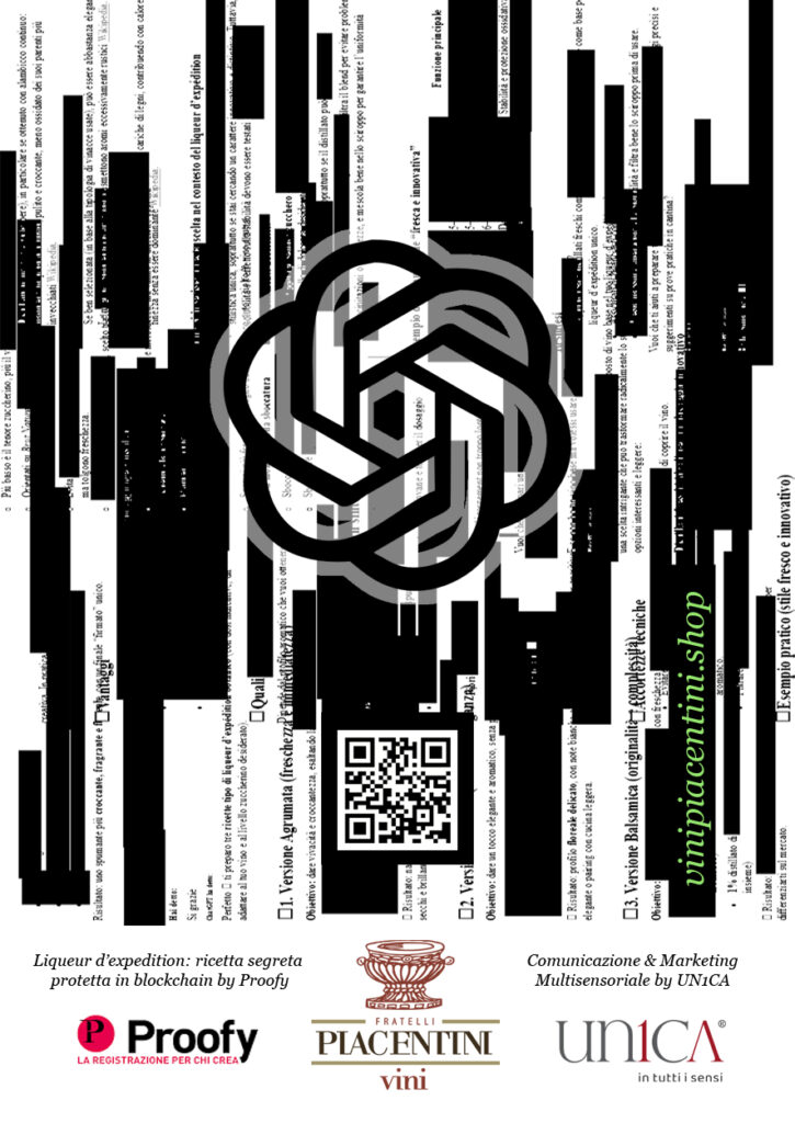 La prima e unica esperienza sensoriale frutto del dialogo tra il sapere trentennale di un enologo piacentino e la potenza di calcolo dell’intelligenza artificiale generativa di ChatGPT. Da questo dialogo,